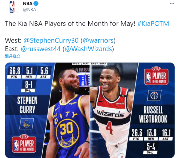 你的位置: 24直播网 篮球直播 NBA 官宣五月最佳大奖!库里蝉联成勇士队史首人,威少当选创历史第一神迹