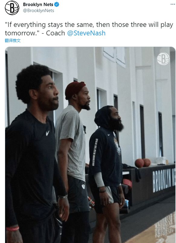 篮网官方也晒出这一张三巨头合影,晒照并且写道:如果一切情况保持不变,那么三巨头将在明天同时上场;篮网为三巨头再次合体而预热,恐怖的三人组又来了。