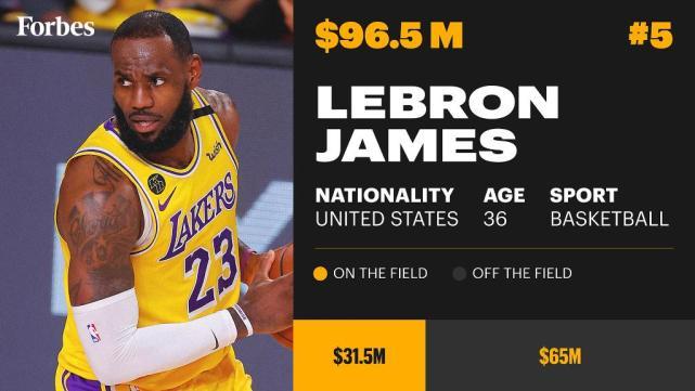 全球运动员年收入榜揭晓!詹姆斯9650万美元排名第5,杜兰特位居第10