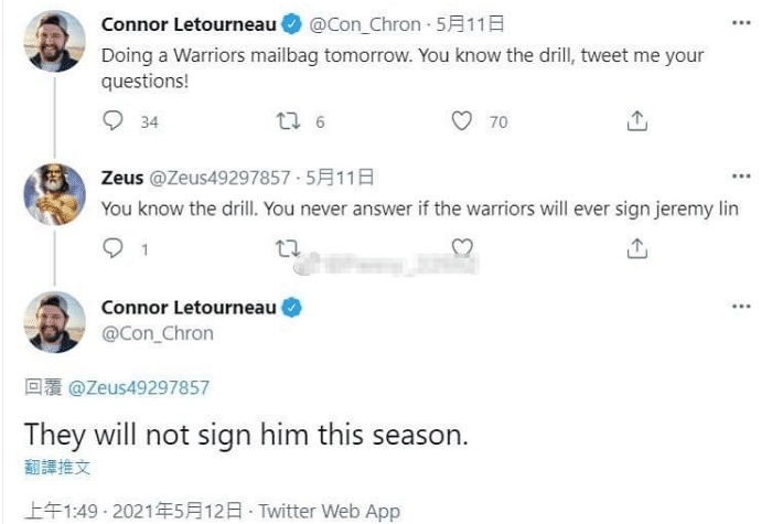 也就是说马上要打附加赛的勇士不会签约林书豪,而他们的目标是旧将乔丹贝尔,同时Connor Letourneau还表示林书豪的机会不多了,虽然马刺奇才热火开拓者还有引援的名额,但这些球队很有可能在季后赛到来之前不引援,就以目前队内的球员出战本赛季的所有比赛。