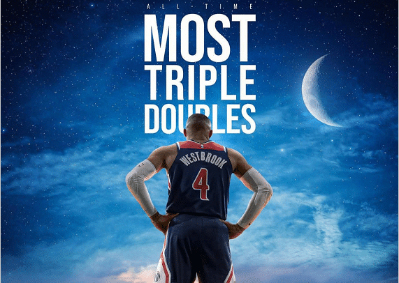 很快外媒就晒出了韦少的三双纪录,其中包括: