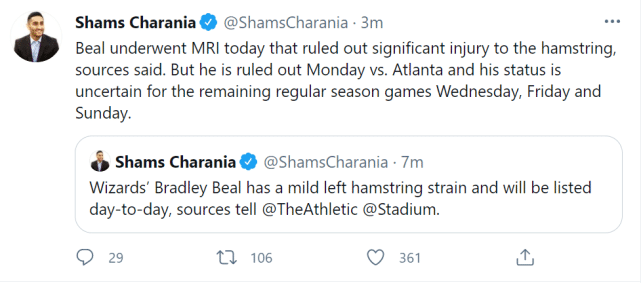 奇才官宣!比尔遭遇腿筋拉伤缺阵,韦少单核战老鹰再冲三双里程碑