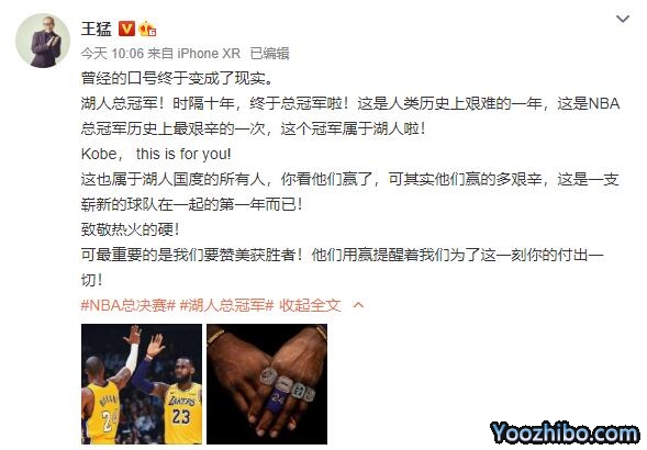 湖人总冠军!时隔十年,终于总冠军啦!这是人类历史上艰难的一年,这是NBA总冠军历史上最艰辛的一次,这个冠军属于湖人啦!