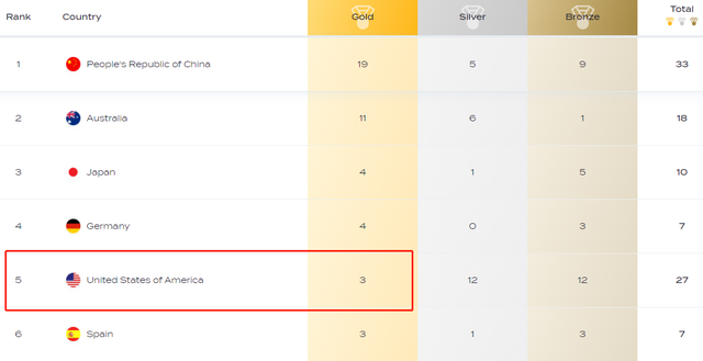 世锦赛第一!中国19金预定榜首,美国2天0金牌,恐创历史最差