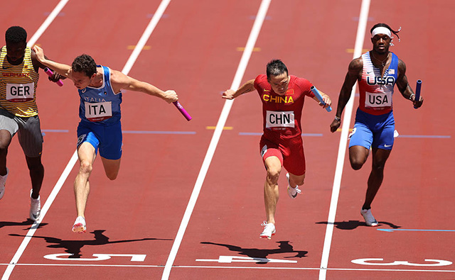 最终,中国队跑出了37秒92排在小组第一直接晋级决赛,而加拿大以微弱劣势排在第二,意大利队则在百米冠军雅各布斯的带领下跑出37秒95,排在第三位晋级决赛。