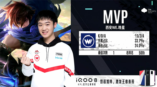 双方和平开局。1分50秒下路团战,娜可露露拿下一血。2分17秒云缨拿下暴君。2分50秒下路团战,双方1换1。3分25秒野区团战,西安WE打出0换2。4分30秒下路团战,西安WE打出1换4。5分14秒公孙离推掉下路一塔。5分44秒云缨被击杀,兰陵王推掉上路一塔。7分20秒中路团战,双方1换1。9分钟野区团战,西安WE打出0换2。10分29秒狄仁杰推掉中路一塔。11分钟娜可露露拿下暴君,廉颇被击杀。12分钟娜可露露拿下主宰。16分钟娜可露露拿下主宰。18分钟野区团战,西安WE打出1换3。19分09秒西安WE推掉水晶拿下本场比赛胜利。