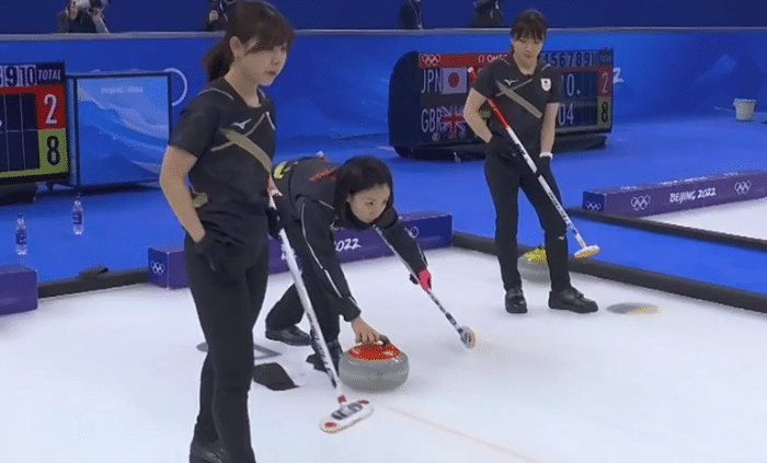 第6局的比赛,日本队有机会夺2分的,但是比较遗憾的是藤沢五月最后一投力量大了一些,最终日本队拿到了1分,第七局的比赛,缪尔黑德关键一投完成双飞,藤沢五月出手最后一壶力量小了点,缪尔黑德最后一壶将红壶打出,英国队打到了4分,这一局英国队夺得了4分,场上比分变成了8:2,第8局日本队后手拿回1分。