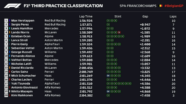- 【录像】【腾讯】2021F1比利时大奖赛第三次练习赛 圈速2021-08-29 01:40:38