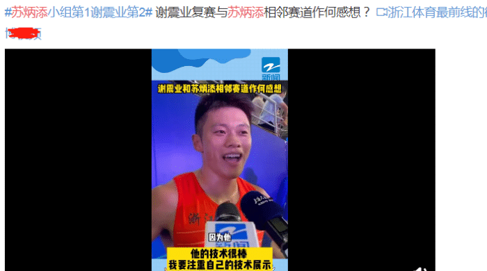 “苏炳添目前整体的技术确实相当高,对于我来说,今年其实训练并不是特别系统,所以,我现在比较注重的是自己技术的一个展示”。谢震业对苏炳添一直很尊重,之前采访时,也曾称赞苏炳添是所有年轻运动员学习和追逐的榜样。