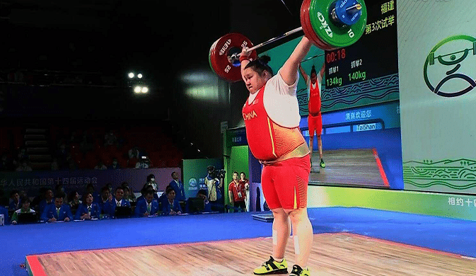 挺举环节,李雯雯的开把本来是175公斤,但她决定降低到167公斤,降低了8公斤之后李雯雯举的非常轻松,很稳也直接以311公斤的总成绩,来到第一名,开把就已经领先第二的孟苏平15公斤。主要对手最后一次试举,都不敢挑战超越李雯雯的总重量,孟苏平拿下银牌,而李雯雯更是提前夺冠。李雯雯第二把176公斤成功,比心庆祝,李雯雯的第三把直接放弃,拿下了全运会首金。