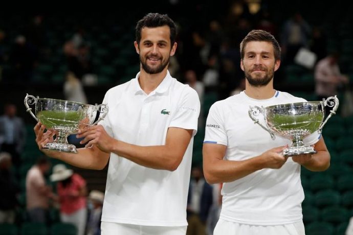 24直播网7月12日讯 7月10日,温网男双决赛,头号种子麦克蒂奇/帕维奇组合以6-4/7-6(5)/2-6/7-5战胜4号种子格拉诺勒斯/泽巴洛斯组合,夺得冠军,同时他们也成为首对在大满贯男双比赛中获得冠军的克罗地亚组合。