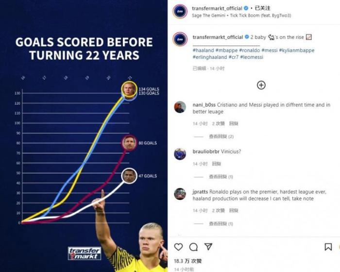 姆巴佩哈兰德能否接班梅罗是足坛热门话题。德转写道:两只小山羊(历史最佳球员)冉冉升起中。
