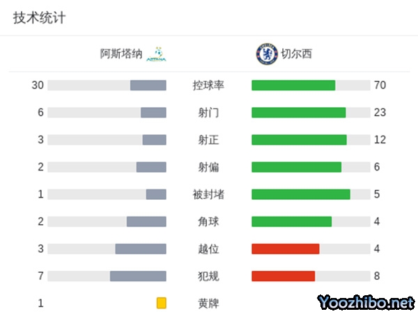 第14分钟,吉乌前场右路得球一路杀入禁区后打近角得手,切尔西1-0阿斯塔纳。