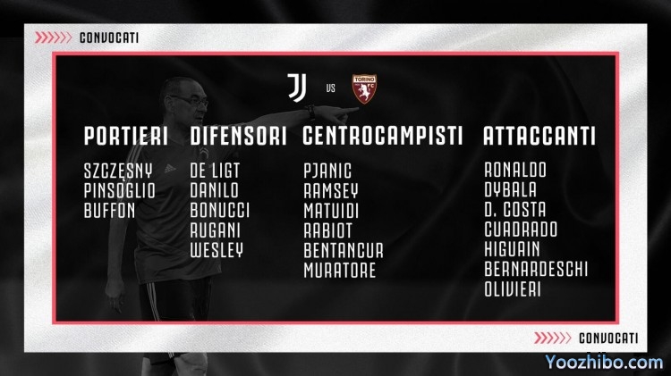 尤文图斯vs都灵德比大名单:C罗领衔锋线铁三角