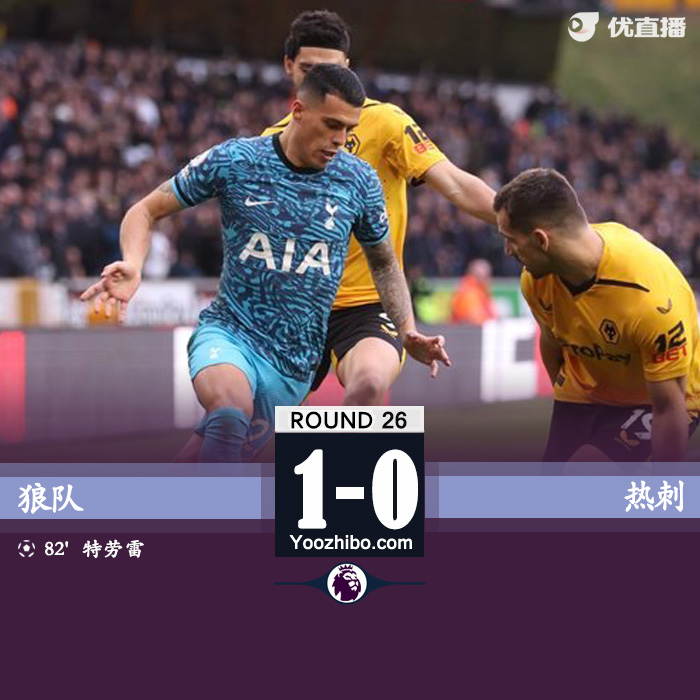 24直播网讯 北京时间3月4日23:00,2022-23赛季英超联赛第26轮,热刺客场挑战狼队。上半场迭戈-科斯塔伤退,波罗任意球中框,两队暂0-0战平;下半场孙兴慜射中横梁,特劳雷补射破门,热刺0-1狼队,结束英超2连胜,仍然排在第四位。