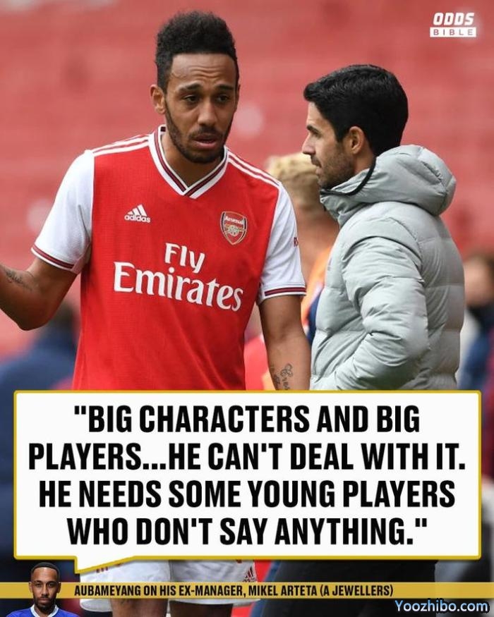 24直播网10月11日消息,切尔西前锋奥巴梅扬评价前主帅阿尔特塔时称,他管理不了大牌球员。