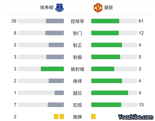 全场结束,曼联客场2-1逆转埃弗顿。