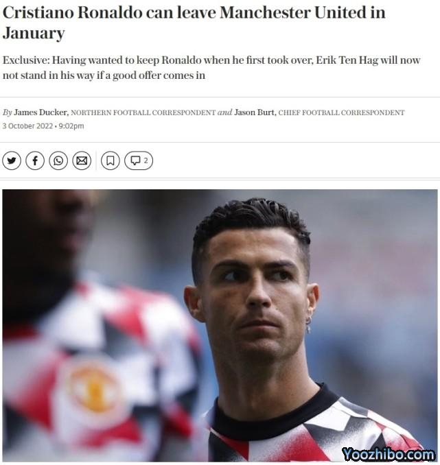 24直播网10月04日讯 凌晨,来自英国知名媒体《电讯报》的消息,在对阵曼城的比赛枯坐板凳90分钟后,失望的C罗离队欲望更加强烈。他与经纪人门德斯,正在全力寻求明年一月离开曼联,如果有合适报价到来,曼联主帅滕哈格也不会阻止C罗离队。