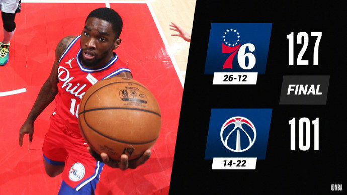 76人(26-12):恩比德23分7板3助2帽、丹尼-格林12分6板4助2断、哈里斯14分8板3助、米尔顿18分4助2断、科克马兹18分3板3助,霍华德6分10板