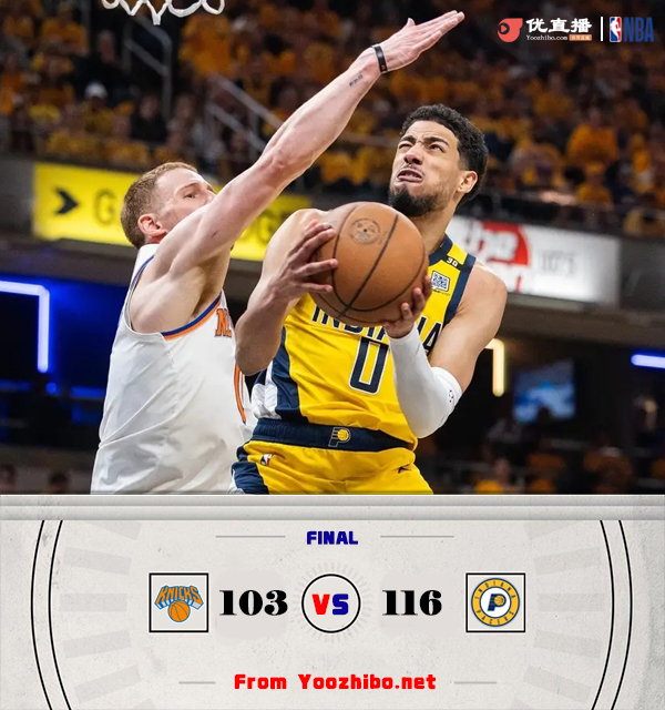 24直播网5月18日讯 步行者今日坐镇主场迎来和尼克斯的G6之战,尼克斯上一场击败步行者后夺得赛点。首节开局双方都不敢大意,整个第一节最大分差不过5分但也很快被抹掉;布伦森开局上来就连中两粒进球,然而这是他上半场的全部运动战进球,随后遭到重点关照的他11次出手全部偏出,好在麦克布莱德连续飙进三分为球队续上火力;步行者这边的打法更全面几乎登场球员就有贡献;这波拉锯一直持续了一节半的时间,次节后半段尼克斯突然熄火,步行者抓住机会送出17-2的攻势一举拉开10分领先结束上半场。休息归来布伦森状态有所回暖但防守端已经无力限制对手,步行者这边多点开花完全掌控局势,末节开局步行者送上11-4的攻势将分差拉大至20分奠定胜局。最终,步行者主场以116-103轻取尼克斯将比赛拖入抢七大战。