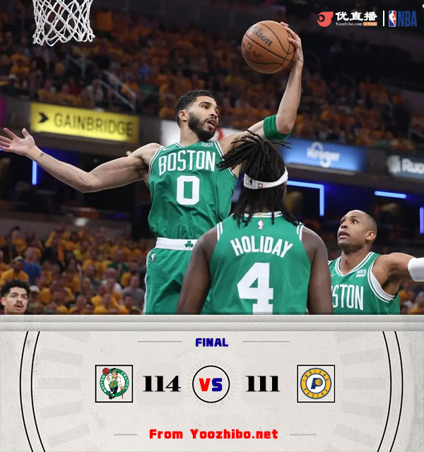 24直播网5月26日讯 NBA季后赛东部决赛G3,步行者今日回到主场迎战凯尔特人,双方前两战凯尔特人都取得胜利大比分2-0领先,此役哈利伯顿和波尔津吉斯均缺战。比赛上来,凯尔特人就率先进入状态打出8-2的开局取得领先,步行者虽然一直处于落后但始终紧咬比分,首节他们只落后1分,次节步行者继续冲击内线,特纳连续得分帮助球队成功反超,托平的追身中距离更是将分差拉开到两位数,半场结束时凯尔特人落后12分;下半场回来,步行者的命中率有所下降,不过凯尔特人也并没有迫近比分,双方一直围绕着十分左右的分差展开拉锯,末节凯尔特人发起凶猛的反扑,比赛悬念也是打了回来,关键时刻霍勒迪打成反超2+1,内姆哈德中距离打铁,随后又是被霍勒迪面断,内史密斯绝平三分不中,最终凯尔特人18分逆转步行者,大比分3-0拿到赛点。