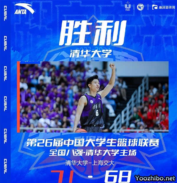 末节,上海交大依靠胡汇的三分和王岩的补篮再次反超比分,但清华大学总能关键时刻拿分,以连拿4分的卢骏为首,清华大学不断冲击篮下拿分回敬11-2的攻势再次拉开比分。上海交大最后没有放弃,胡汇的补篮和吴泽昊的抢断上篮帮助他们在读秒阶段追至3分看到希望,不过最后绝平三分不中没能上演神奇。最终,清华大学71-68力克上海交通大学晋级全国巅峰4强。