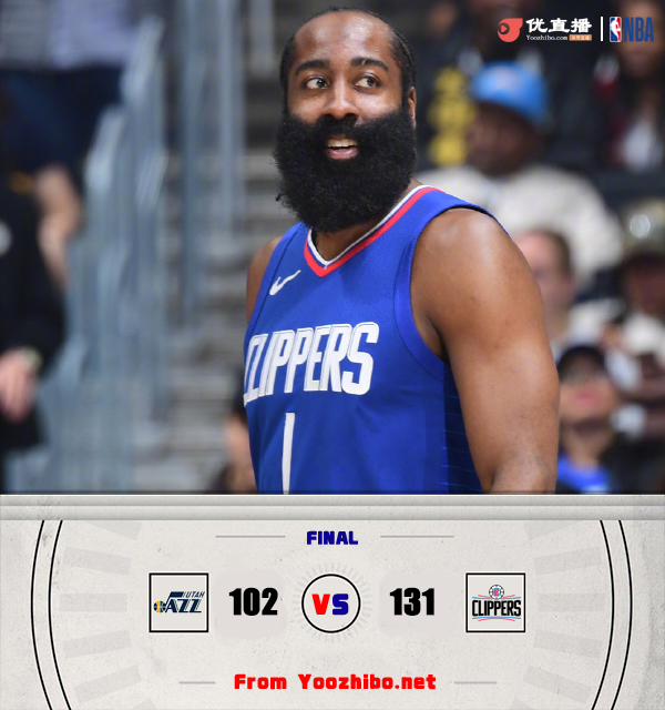 24直播网4月6日讯 NBA常规赛,快船今日迎战爵士,前者上场比赛险胜掘金,后者则是惨遭十连败,此役莱昂纳德、马尔卡宁、克拉克森、科林斯和凯斯勒缺战。比赛上来,场上就呈现出一边倒的局势,快船前8投全中打出19-4的开局,整个第一节爵士只拿到16分,次节爵士的进攻虽然有所好转,但是他们依旧无法限制对手的攻势,半场结束时快船已经领先了33分;下半场回来,爵士终于在进攻端打开,单节轰下37分稍稍止血,不过由于此前分差过大,他们在末节还是没有获得任何改变比赛结果的机会,最终快船大胜爵士,送给后者11连败。