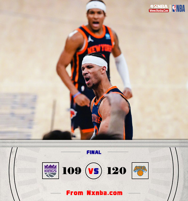 24直播网4月5日讯 NBA常规赛,尼克斯今日迎战国王,前者近来情况不佳遭遇三连败,后者则是取得两连胜,此役蒙克和阿努诺比缺战。比赛上来,两队短暂拉锯后国王一波小高潮将分差拉开到了两位数,整个第一节尼克斯只拿到20分,次节国王迅速将分差扩大到二十分以上,但之后他们的命中率急剧下滑,尼克斯在布伦森的带领下打出一波16-2的攻势,半场结束时国王领先8分;下半场回来,尼克斯继续发起反扑,迪文岑佐节末外线连续出手成功帮助球队实现反超,末节双方一直保持拉锯,但随后哈特和布伦森联手打出一波13-0的攻势拉开分差,最终尼克斯21分逆转国王结束三连败。