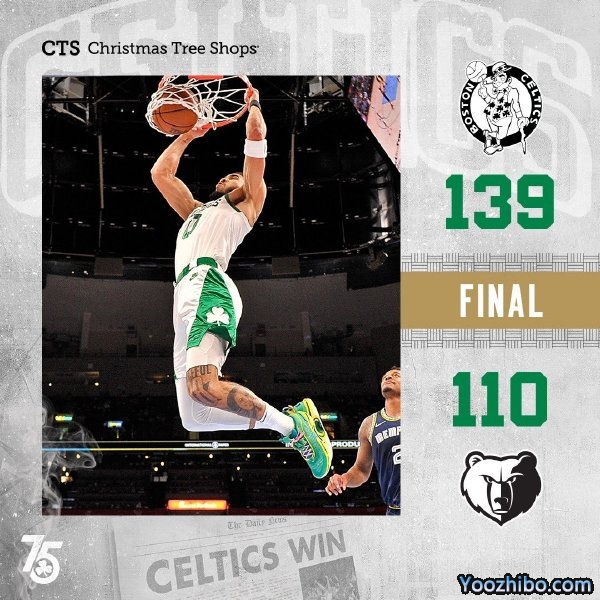 24直播网 4月11日讯 NBA常规赛迎来收官之战,灰熊主场迎战凯尔特人,灰熊目前56胜25负已经确定名列联盟次席,而凯尔特人本场取胜则排在东部第3位,灰熊多名主力本场轮休。开局绿军迅速进入状态建立主动权,但残阵灰熊众将也通过外线三分给出回应并咬住比分,绿军依靠内线优势还是领先到7分,次节灰熊持续追分,但绿军依靠不错的手感回应小高潮稳住优势,节末塔图姆找到外线手感连中三元将分差直接拉开至20分以上。第三节,双方持续展开拉锯战,绿军众将都能给出回应,替补也是发挥出色持续取分,三节结束绿军依然领先25分,末节绿军直接换上替补中的替补练兵,上来就一波小高潮直接拉开至30分以上分差,随后双方你来我往,绿军牢牢掌握住优势,最终绿军大胜残阵灰熊,常规赛圆满收官的同时锁定东部第2。