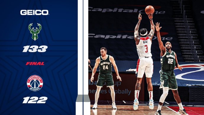 24直播网3月16日讯 时隔两天,雄鹿和奇才迎来了他们的第二场较量,上一次交锋字母哥和威少互飙三双,最终还是雄鹿更胜一筹,此役比尔复出,奇才也是憋着一口气要复仇。首节雄鹿率先找到外线手感,迪文岑佐与霍勒迪用一波三分雨为球队确立了领先优势,次节波蒂斯与字母哥又联手送出10-2的攻击波将分差拉大到15分,奇才虽然能够在进攻端予以回应,无奈防守端太过拉胯,半场便让对手拿下将近70分。下半场雄鹿继续扩大战果,然而就在比赛快要被打花之际,雄鹿进攻突然断电,八村塁和比尔挺身而出一度将分差缩小到只有5分,可惜雄鹿很快便找回进攻感觉,奇才松散的防守让他们无法更进一步。最终,雄鹿133-122再次击败奇才豪取四连胜。