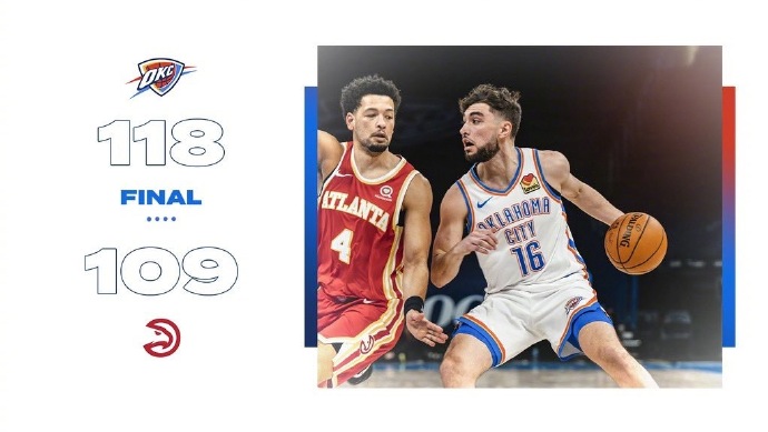 24直播网2月27日讯 老鹰客场挑战雷霆,赛前双方分列东西部的十一和十二位,战绩上老鹰也仅仅领先雷霆一个胜场。比赛一开始,老鹰牢牢占据内线优势,卡佩拉和柯林斯轮番冲击篮筐得手,慢慢找到感觉的多特带队展开反击,首节雷霆31-33落后2分。次节前半段双方展开对攻比分紧咬,后半段老鹰命中率出现下滑,亚历山大和多特带领雷霆持续发力,雷霆半场63-55反超比分。易边再战,老鹰依然没什么起色,雷霆则延续火力,里突外投连续拿分,穆斯卡拉压哨超远三分帮助雷霆96-80三节领先16分。进入末节,卡佩拉个人表现抢眼无奈球队整体表现不佳,老鹰最多只能把分差迫近到6分,亚历山大和多特连续得分,雷霆没有再给老鹰机会,主场击败老鹰取得两连胜。
