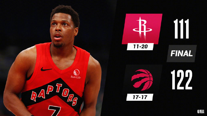猛龙(17-17):范弗里特25分4篮板4助攻3抢断,鲍威尔30分3篮板,洛瑞20分11篮板10助攻,阿努诺比11分3篮板5助攻,本布里13分4篮板,贝恩斯9分6篮板,布歇7分8篮板3封盖。