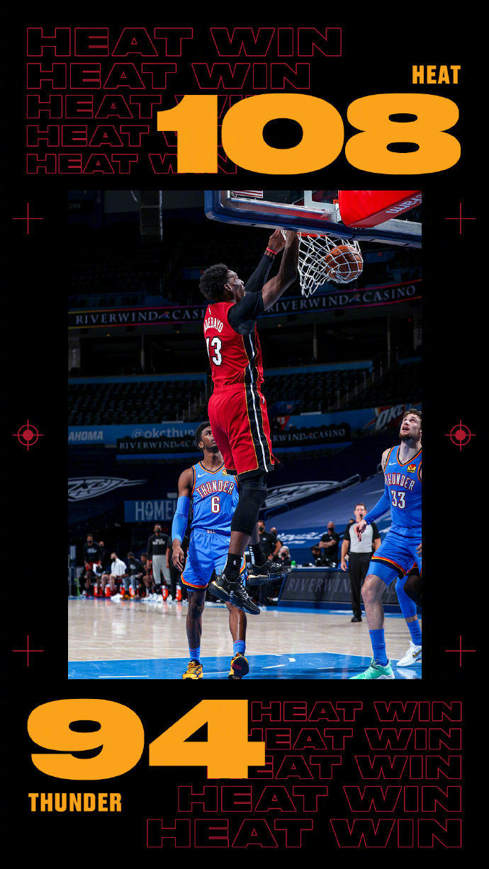 热火(14-17):阿德巴约19分13板5助,巴特勒15分4板9助,邓罗22分7板,纳恩20分5板9助3断2帽,奥利尼克11分6板,斯特鲁斯11分2板,伊戈达拉6分5板,阿丘瓦2分3板,文森特2分1助