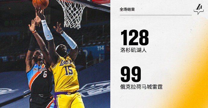 24直播网1月14日讯 湖人前往客场挑战雷霆,两队都是背靠背作战。上半场浓眉在内线频频得手,詹姆斯连中三分,两人率领湖人早早就建立起两位数领先。易边再战,湖人延续着手感,浓眉和詹姆斯继续予取予求,哈雷尔等角色球员亦连续砍分,多点开花的湖人把领先扩大到20分以上,攻防两端全面处在下风的雷霆毫无抵抗之力。最终,6人得分上双的湖人兵不血刃地以128-99大胜雷霆,取得4连胜。