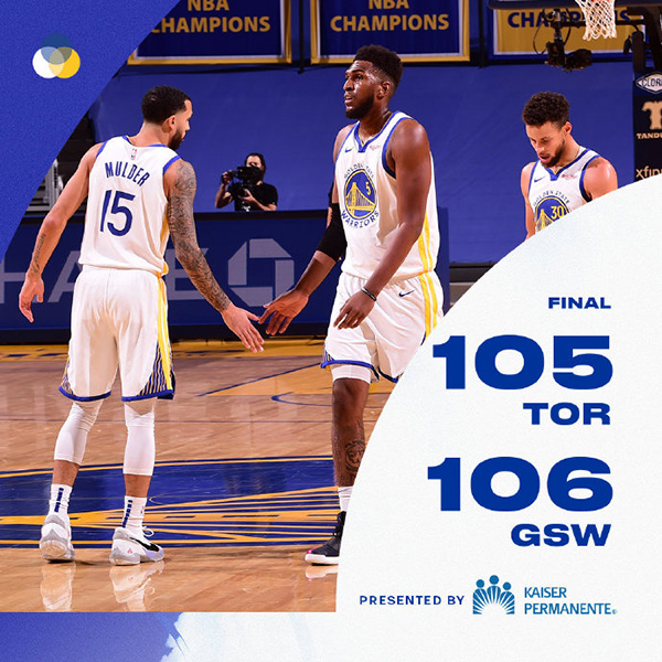 24直播网1月11日讯 勇士坐镇主场迎战猛龙,此役猛龙采用多人包夹库里的防守策略,但是勇士的维金斯、格林和李等站出来提供火力支援,勇士得以破解猛龙的防守,在前三节建立起15分领先。不过,勇士在末节未能延续火力,猛龙的洛瑞则突然爆发,他频频命中三分并强突得手,率领猛龙打出高潮成功反超比分。关键时刻,李成功造洛瑞犯规两罚全中,勇士反超1分,留下4.3秒给猛龙。最后一攻,西亚卡姆翻身跳投出手不中,猛龙以105-106惜败。