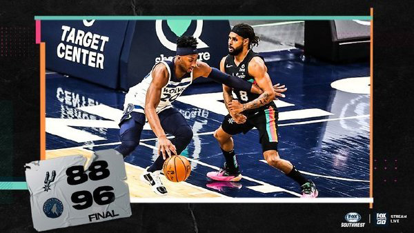 24直播网1月11日讯 NBA常规赛马刺再战森林狼,上次双方的交手马刺经过加时获得险胜,森林狼目前遭遇7连败,本场比赛德罗赞和唐斯双双缺阵。本场比赛开始后拉塞尔连续三分帮助森林里抢得先机,不过沃克接连杀入内线追分,第二节森林狼仍旧主要杀入内线,不过马刺一波高潮完成反超,米尔斯和穆雷外线也找到手感连续投篮命中,上半场马刺49-44领先。下半场比斯利接连单打得手帮助森林狼一度反超,不过马刺稳扎稳打再次领先,但第四节森林狼再次掀起反扑完成反超,最后关头森林狼顶住压力96-88战胜马刺成功复仇也结束7连败。