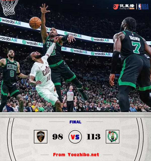 24直播网5月16日讯 NBA季后赛东部半决赛G5,凯尔特人回到主场迎战骑士,由于在克利夫兰的两场比赛绿军全部拿下,目前凯尔特人3-1拿到赛点。本场比赛,米切尔和阿伦继续缺阵,勒韦尔也不打。比赛开始,双方接连从外线打开局面,怀特状态火热单节得分上双,而小莫里斯也成为替补奇兵,弹无虚发给出回应,比分一直拉不开,首节双方打成28平,次节双方再次在外线展开对飚,小莫里斯继续保持不错手感,霍福德、怀特和塔图姆接连4记三分帮助绿军反超比分,半场凯尔特人领先6分。下半场,霍福德联手塔图姆打出11-0进攻波一举建立双位数领先,小莫布里接连攻击内线连砍9分止血,塔图姆再站出来回应,第三节双方又近乎打平,末节小莫布里和小莫里斯一内一外继续追分,但怀特、霍福德和塔图姆各自扔进三分强势回应并再次拉开比分,随后绿军牢牢保持住10分左右领先,最终凯尔特人113-98力克骑士,总比分4-1晋级东决。