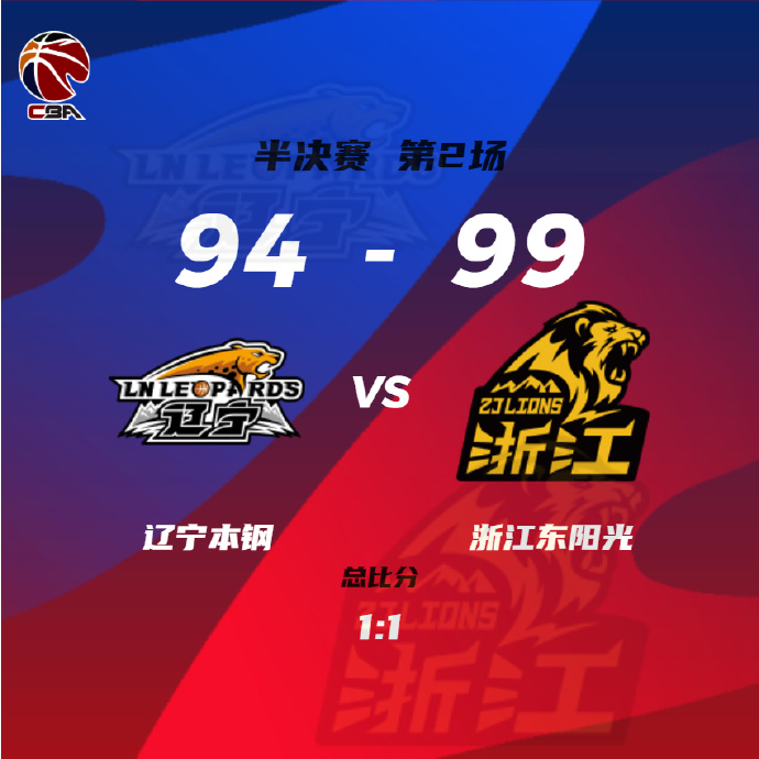 24直播网4月28日讯 CBA季后赛半决赛,辽宁今日迎战广厦,在双方首场交锋中辽宁以12分的优势先下一城,本场广厦势必想要给出回应,此役赵岩昊缺战。比赛上来,广厦就率先进入状态打出6-1的开局,分差也是逐渐拉开到了两位数,辽宁此后虽然一度将分差缩小到2分,但广厦及时用一波8-0的小高潮稳住局势,之后的比赛双方一直围绕着十分左右的分差展开拉锯,半场结束时辽宁落后7分;下半场回来郭艾伦因为拉伤没有再上场,不过辽宁还是迅速追平比分,可惜的是他们并没能把握机会实现反超,比赛悬念保持到了最后,关键时刻孙铭徽飚中加长三分不给对手机会,最终广厦力克辽宁,将大比分追至1-1平。