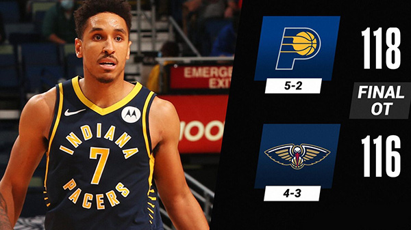 步行者118-116险胜鹈鹕 布罗格登准绝杀21+11
