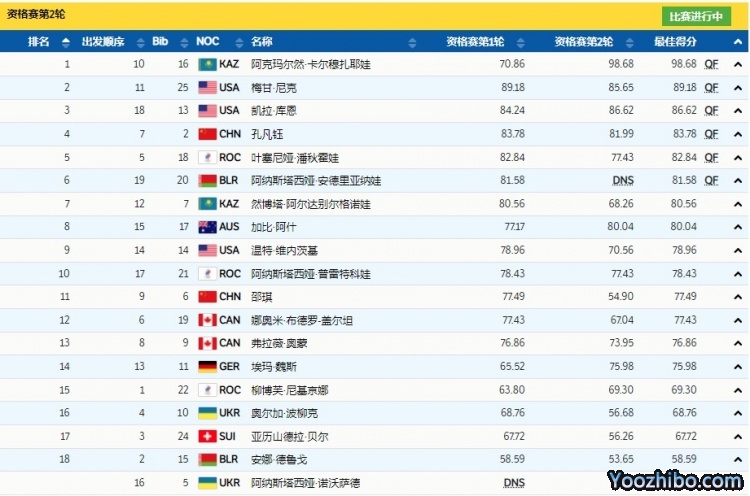 02月14日 冬奥会自由式滑雪女子空中技巧资格赛第2轮孔凡钰/邵琪 全场录像及集锦