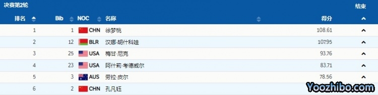 24直播网 2月14日讯 冬奥会自由式滑雪女子空中技巧决赛的第2轮正在进行,中国选手徐梦桃、孔凡钰在决赛第1轮中以第二、三晋级。第二轮决赛仅有一跳的机会。