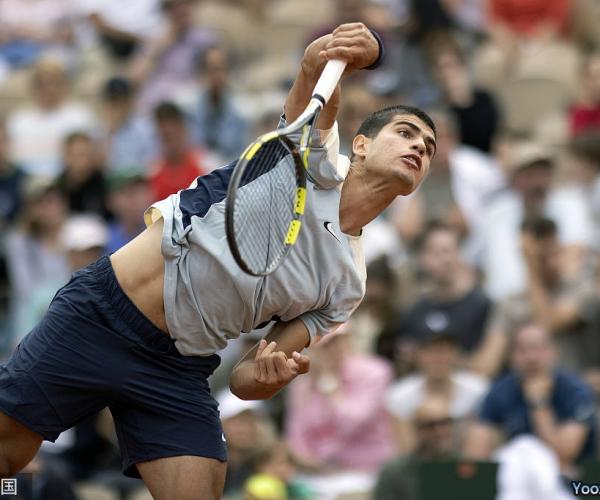 决胜盘阿尔卡拉斯在第2局遭到破发,开局0-3落后。第5局阿尔卡拉斯破掉对手发球局,随后保发追至3-3平。第7和第8局双方互破发球局,第9局阿尔卡拉斯再度破发,随后他连下4分保下发球胜赛局,6-4赢下决胜盘。
