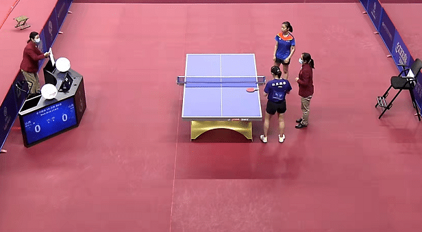 首局陈梦一直处于落后,韩菲儿的状态确实非常好,陈梦扮演追赶者的角色,一度7-9落后,这一局陈梦9-11输掉。第二局陈梦更是0-5开局,随后陈梦开始疯狂追分,缩小差距,6-7打停对手。暂停回来之后,韩菲儿10-7拿到局点,她以11-9拿下第二局。