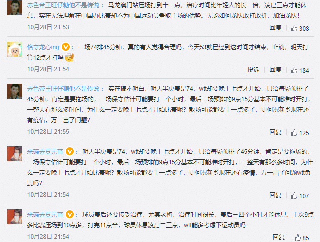 赛事的安排也引发一定的争议,主要是在时间层面,因为赛事变成了7局4胜,所以每一场比赛的时间肯定会更长,而澳门冠军赛的时候马龙的比赛时间都超过了晚上11点。所以不少球迷吐槽,称其实可以更早一点比赛,比如下午5点开赛,因为7点开赛的话,每一场比赛的时间更长,一定会出现拖场的情况,最晚出战的运动员的状态、赛后恢复以及第二天的备战都会受到影响,此前的比赛就是最明显的例子。