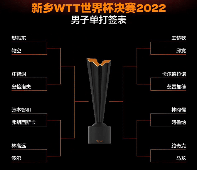 下半区:王楚钦vs邱党、雨果vs莫雷加德、林昀儒 vs阿鲁纳、达科vs马龙;