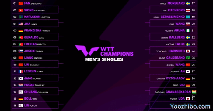 男单抽签:男单的种子选手樊振东上上签,梁靖崑首轮VS林高远,看点十足,马龙和莫雷高德下半区。