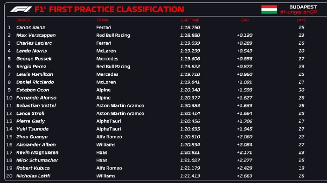 - 【集锦】[F1]2022年F1匈牙利站第一次练习赛 塞恩斯第1,冠宇15 全场集锦2022-07-29 22:46:28