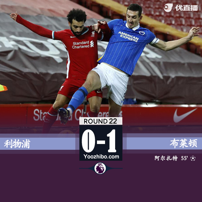 24直播网2月4日讯 北京时间2月4日凌晨4:15,英超联赛第22轮继续进行,利物浦坐镇主场迎战布莱顿。上半场,萨拉赫错失单刀,双方均无建树。下半场,阿尔萨特打破僵局,此后利物浦围攻未果。全场比赛结束,利物浦0-1不敌布莱顿,遭遇主场两连败。