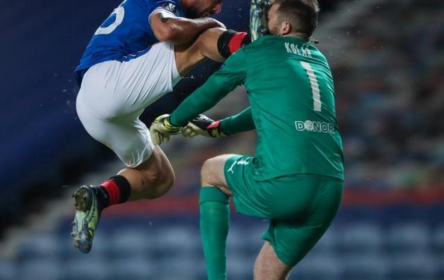 24直播网3月19日讯 今天凌晨,格拉斯格流浪者在欧联杯八分之一决赛次回合比赛中0-2不敌布拉格斯拉维亚,流浪者在比赛期间被罚下两人,其中前锋鲁夫因为亮鞋钉飞踹对方门将的脸被罚下场。