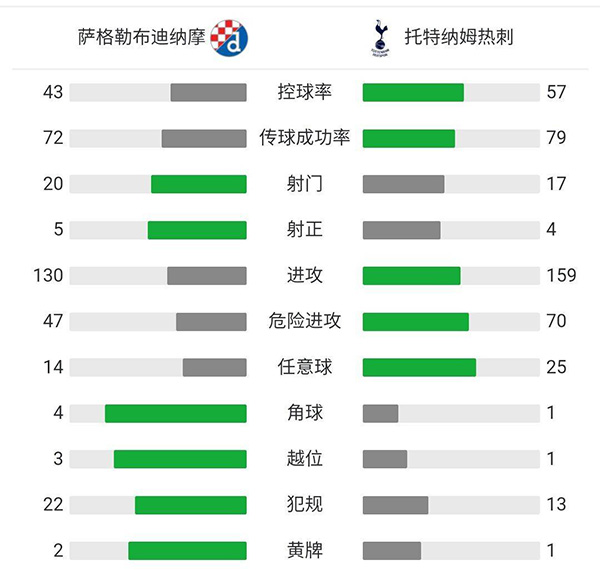 第82分钟,艾特文右路横传,奥尔西奇包抄轻松推射破门,萨格勒布迪纳摩2-0热刺!